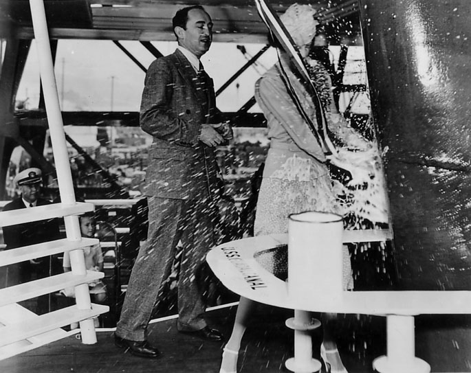 A. I. Malstrom christening the ship as her husband looks on, 5