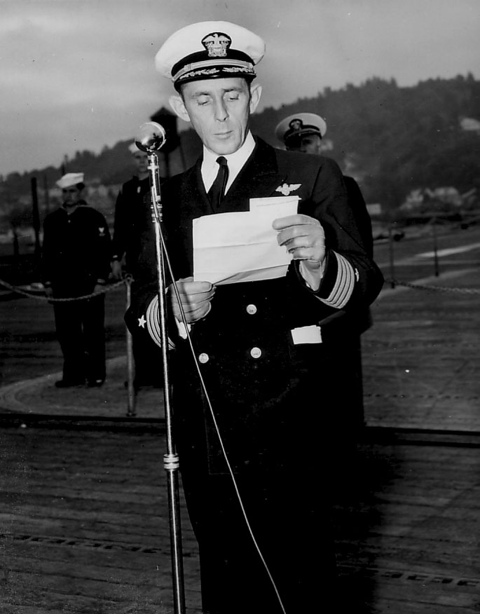 Daniel V. Gallery addresses the crew, 25 September 1943 |