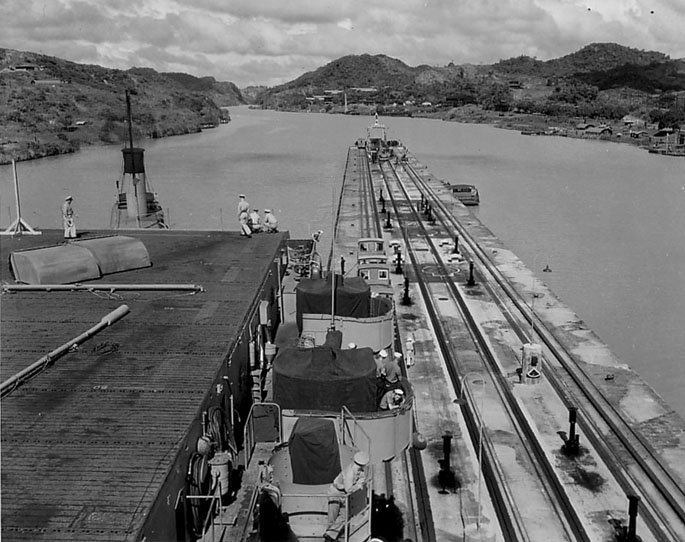 through Panama Canal, canal lock Pacific side, 26 November 1943 |