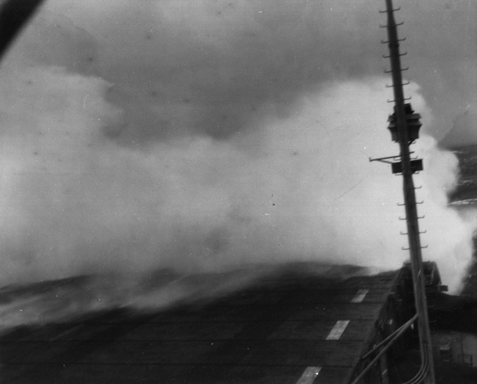 mount, and the hanger deck doors battered in flooding the aft elevator