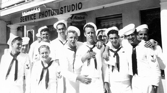 penciled notation on the back of this snapshot indicates they are USS