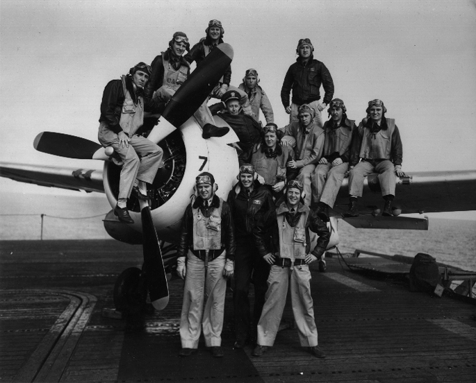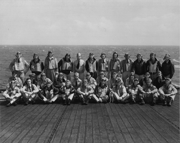 VT pilots on the flight deck of the USS Guadalcanal, 15 April